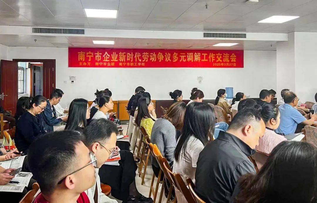 3月27日,南寧市企聯(lián)組織召開了“新時(shí)代勞動(dòng)爭議多元調(diào)解工作交流會(huì)”。廣西天緣綠科技集團(tuán)作為市企聯(lián)副會(huì)長單位受邀參會(huì),與全市企業(yè)管理人員、人力資源專家及工會(huì)干部共同探討勞動(dòng)爭議多元調(diào)解的創(chuàng)新模式,助力構(gòu)建和諧勞動(dòng)關(guān)系。